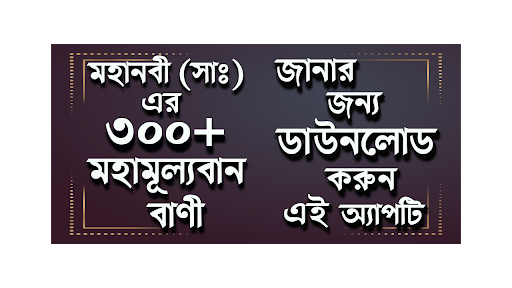 হযরত মুহাম্মদ (সাঃ) এর বানী সমূহ নিয়ে বানান হয়েছে যা আপনি যানার মাধম্যে আপনি আপনার জীবনের দৃষ্টিভঙ্গি পরিবর্তন করে দিতে পারে।হযরত মুহাম্মদ সা এর বাণী এবং মুহাম্মাদ (সাঃ) এর হাদিস থেকে আমাদের জীবনের অনেক কিছূর খিার আসে যা আমাদের জীবন কে সুনাদর করে তুলবে।মহানবীর হাদিস থেকে আমরা নবীর সুন্নাহ সম্পর্কে জানতে পারবো এবং আমরা সকলেই নবীর আদের্শ ও নিদের্শ মেনে চলতে পারবো।রাসূলের বাণী আমাদের সকল মুসলমানদের সঠিকভাবে পড়া উচিত।
