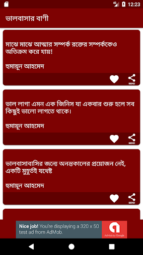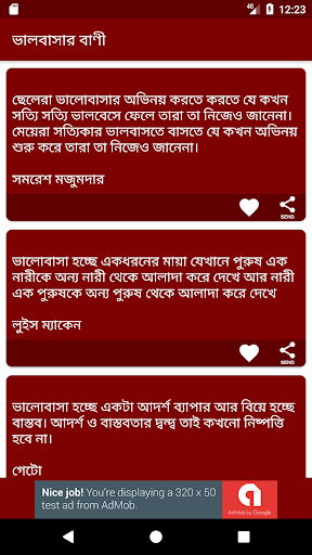 ভালবাসার বাণী অ্যাপ টি বিখ্যাত ব্যাক্তিদের জীবনকে পরিবর্তন করে দেওয়ার উক্তি। বাংলা বিখ্যাত উক্তি যেমন প্রেমের উক্তি, মনিষিদের উক্তি, ইসলামিক উক্তি, ভালবাসার বাণী, বাংলা বাণী,