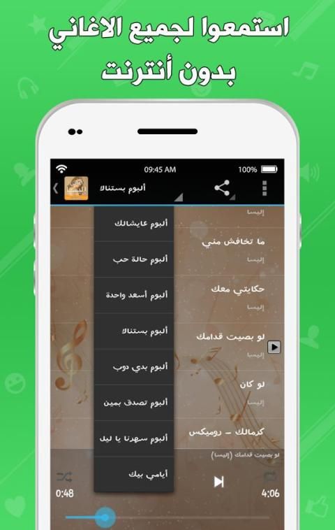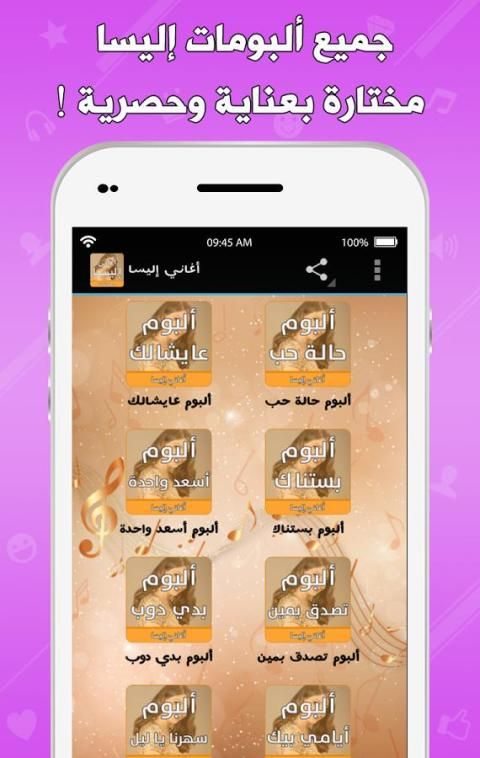 इंटरनेट के बिना संगीत Elissa एक आवेदन जहां आप विशिष्ट गाने और रोमांस प्रसिद्ध लेबनान कलाकार Elissa की एक सीमा है, जो लाल हिरण, पहली ज्ञात Bolbovernma बद्दी संदेह के लेबनान के शहर में 1972 में वृद्धि हुई मेरे पिता अरब दुनिया में सबसे प्रसिद्ध और सबसे अधिक बिकने एलबम्स माना जाता था मिल जाएगा।