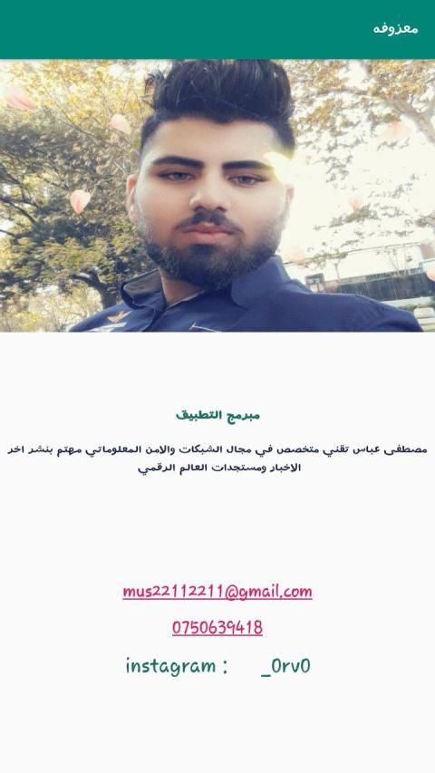 اسمي مصطفى عباس من مدينة النجف الاشرف تقني متخصص في مجال الشبكات والامن المعلوماتي مهتم بنشر اخر الاخبار ومستجدات العالم الرقمي والبرمجة ايضا