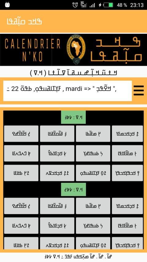 N'Ko sanwala फ्रेंच में अर्थ N'Ko कैलेंडर