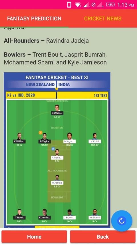 * ड्रीम 11 न्यूजीलैंड ODD के लिए भविष्यवाणियों।