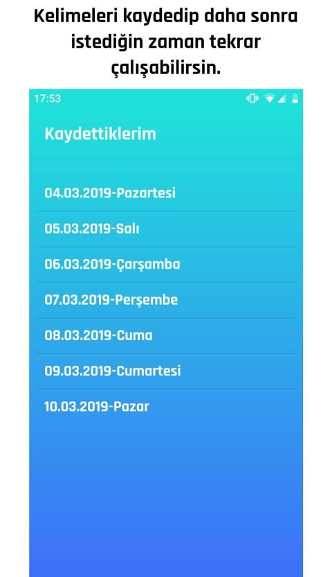 Günün kelimelerini kaydedip daha sonra istediğin zaman o kelimelere tekrar çalışabilirsin.