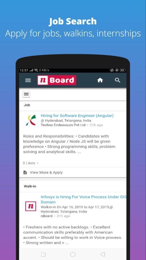 nBoard is an exclusive Networking Platform for Students and Job Seekers. Get latest job updates directly on your mobile. It is a best job search app for freshers who are in the college or just pass outs.
