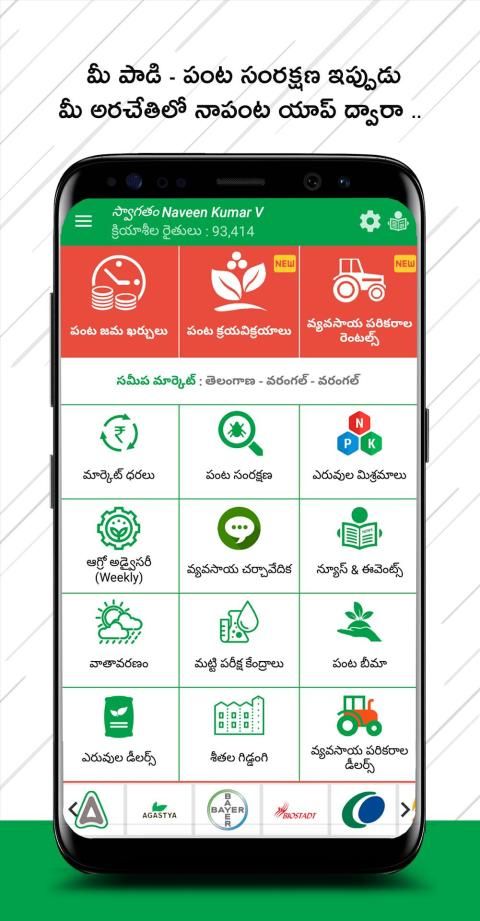 NaPanta is incubated and supported by AIP-ICRISAT and IIIT-Hyderabad. By using NaPanta, a farmer can access real-time and dynamic information pertaining to Daily Market Prices of 3500+ Markets and 300+ Agri Commodities along with 3-Year Price Trend. This free mobile application allows the farmers to track their expenses in an organized manner. Also, the farmers can use the NaPanta for information about crop management techniques, pesticides, insecticides, weather forecast, crop insurance, cold storage and related agri-dealer information in a specific location chosen by a farmer in AP and Telangana. Also With help of NaPanta app a farmer can book an agri equipment as per the requirements of their crop cycle. And farmer can sell their produce through NaPanta online platform without any middlemen.