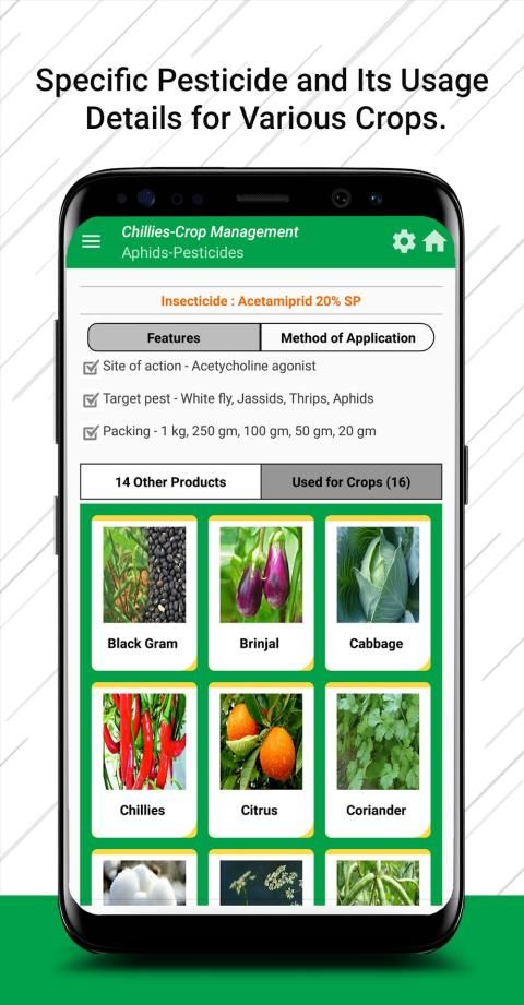 NaPanta की मदद से, एक किसान अपनी सभी फसल से संबंधित मुद्दों के लिए आवश्यक सेवा या 1 मिनट से कम समय प्राप्त कर सकता है जो कि आवेदन में उपलब्ध है। NaPanta ऐप में 120+ से अधिक फसलों पर पूर्ण कीट और रोग प्रबंधन विवरण शामिल हैं, जिनमें 400+ रासायनिक सूत्र हैं, और प्रत्येक फसल और प्रत्येक कीट पर इसका विस्तृत उपयोग है। हमने बायर और टाटा रैलियों जैसी 26+ कंपनियों द्वारा बाज़ार में उपलब्ध 3000+ कीटनाशक उत्पाद प्रदान करके एक अतिरिक्त मील के साथ सेवाओं को बढ़ाया।