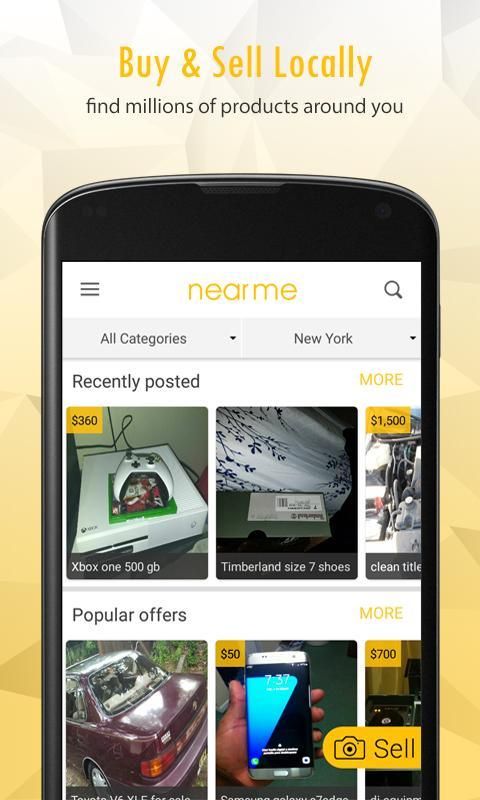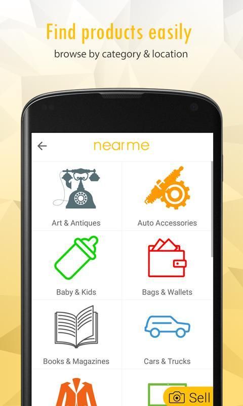 स्थानीय रूप से इस्तेमाल किया इलेक्ट्रॉनिक्स, घरेलू उपकरणों, फर्नीचर, मोबाइल फोन, घर खोजक अचल संपत्ति और इस्तेमाल किया कारों आदि nearme स्थानीय ऑनलाइन शॉपिंग एप्लिकेशन द्वारा की तरह ऑनलाइन खरीद सकते हैं और दूसरा हाथ सामान बेचते हैं।