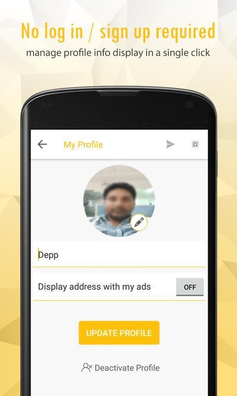 आप nearme पर विज्ञापन पोस्ट लेंगे, तो हम तुरंत यह लोगों को पास के आप और आप का इस्तेमाल किया सामान की दिलचस्पी खरीदार द्वारा संपर्क हो सकता है करने के लिए प्रसारित सीधे इस्तेमाल किया वस्तुओं की बिक्री के लिए किसी भी दलाली / कमीशन का भुगतान करने के बारे में चिंता किए बिना सौदा बंद करने के लिए होगा।