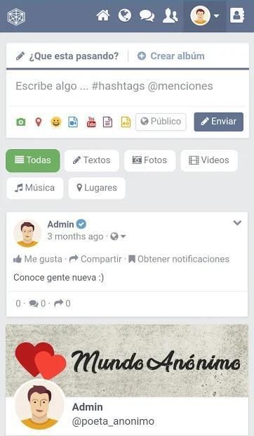 Mundo Anónimo एक आवेदन है जो लोगों के बीच बातचीत पर केंद्रित है।