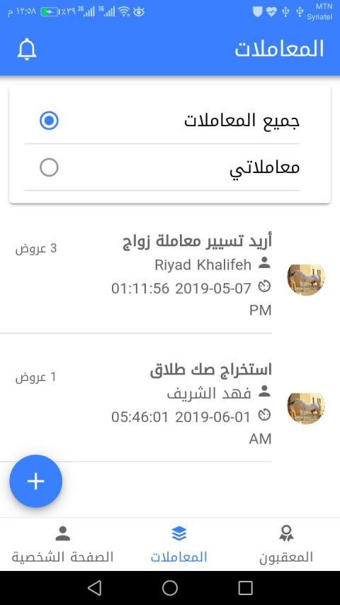 يمكن تطبيق معقب أصحاب المعاملات من إضافة معاملاتهم التي يرديون إنجازها ليقوم المعقبون بإضافة عروض لتنفيذ هذه المعاملة.