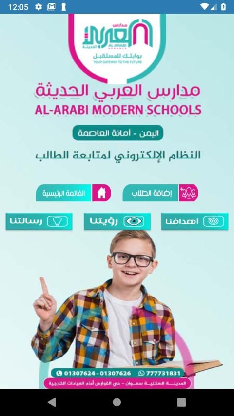 التطبيق الإلكتروني لمساعدة أولياء الأمور لمتابعة أبنائهم الطلاب المسجلين في مدارس العربي الحديثة - اليمن - صنعاء