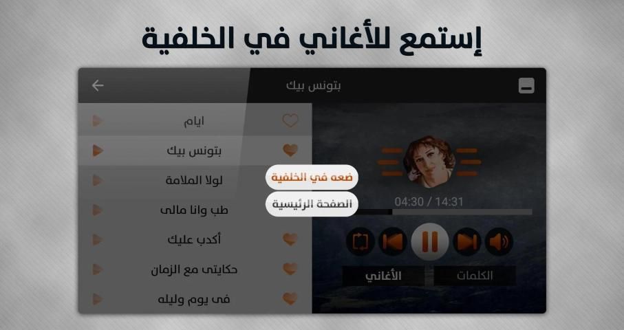 • توضيح هام: نظرا لطول العديد من الأغاني فأننا اضطررنا لأن نرفق البرنامج ب9 أغاني فقط وذلك لأن متجر جوجل لا يسمح بالتطبيقات كبيرة الحجم، شكرا لتفهمكم