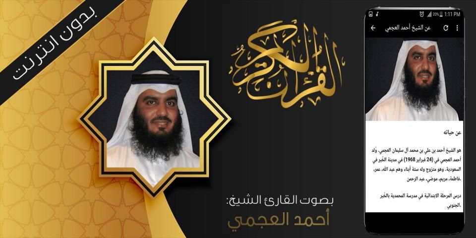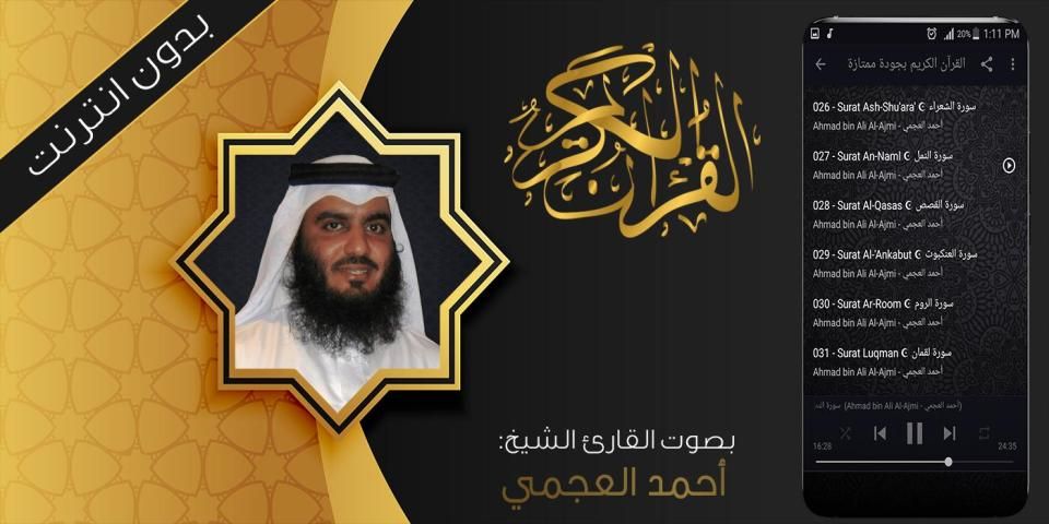 Aj अहमद अल-अजमी की आवाज के साथ नोबल कुरआन के आवेदन की परिभाषा