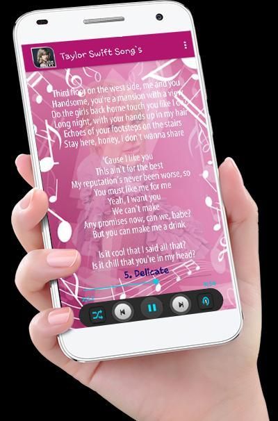 Taylor Swift Song's application comes with lyrics in each song and this application can run OFFLINE (without the need for internet), is displayed interactively with clear images that make it easier for users, presented for FREE and can be saved in EXTERNAL MEMORY.