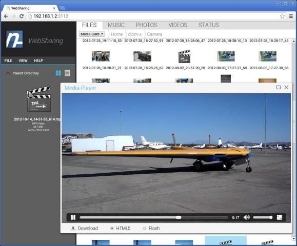 * VIDEO PLAYER: Play videos stored on the phone directly within the browser. Videos may be downloaded or viewed directly using both HTML5 and Flash-based video players. The HTML5 player has streaming support, letting you quickly skip to a position inside large movies.