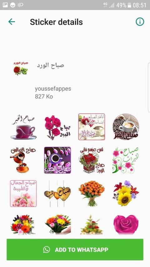 يسعد صباح الورد يا ريحة الورد WAStickerApps