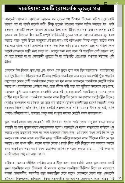 जो लोग भूत कहानियां सुनना पसंद नहीं करते खोजने के लिए मुश्किल। हर कोई सुनने के लिए कहानी डर लेता भूत कहानियां सुनना चाहता है। बंगालियों की कल्पना या मुंह से murubbidera (अनेक-दादी, दादी, दादा) में एक भूत की कहानी घर में सुना है। बाजार से पढ़ने के साथ स्कूल कहानी किताबें पढ़ने भूत कहानियों के विभिन्न प्रकार के खरीदने के लिए। एक भूत की कहानी का डर है, लेकिन रात अधिक पढ़ने के लिए मजेदार है। शरीर कहानी के किसी भी हिस्से में गिर नहीं करता है, या लगता है कि यह chamachama नहीं होता है; Matakiye गर्दन अब एक भूत, भूत की कहानी के लिए आ जाएगा, तो मज़ा पढ़ने के बीच में पाया जा सकता है।
