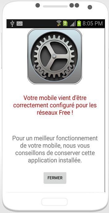 यह ऐप मुख्यभूमि फ्रांस या ला रीयूनियन द्वीप से फ्री मोबाइल उपयोगकर्ताओं के लिए इंटरनेट और एमएमएस एक्सेस सेटअप करने की अनुमति देता है।