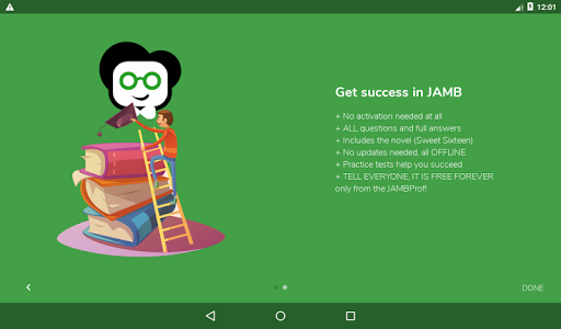 This is JAMBProf. The only JAMB preparation tool that is entirely offline and free (questions and answers, explanations etc).
