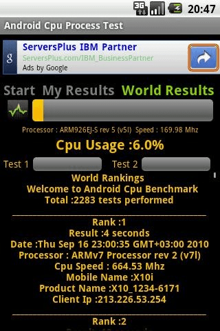 DO YOU WANT TO KNOW HOW FAST IS YOUR PHONE? AND COMPARE IT OT THE OTHER ANDROID PHONES AROUND THE WORLD? -ANDROID PHONE CPU BENCHMARK -TEST CPU,MEMORY,CONNECTION -CHECK YOUR RESULTS,RANKINGS WORLDWIDE -COMPARE YOUR PHONE SPEED -GET YOUR SCORE AS SECONDS -LOWER TIME FASTEST PHONE CPU