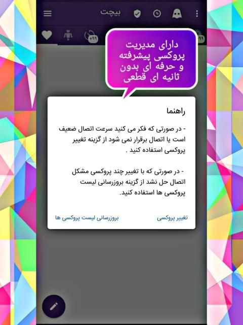 این برنامه کاملا بدون فیلتر و ضد فیلتر می باشد و با استفاده از پروکسی هوشمند شما می توانید بدون قطعی از این پیام رسان محبوب لذت ببرید.