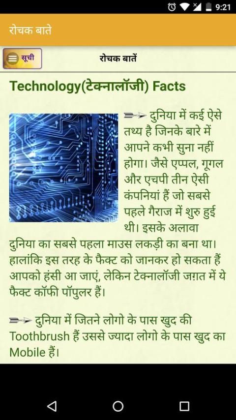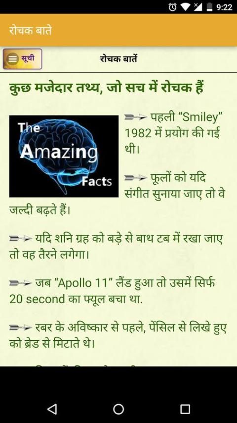 इस एप्लिकेशन में हिंदी भाषा है और दुनिया के रोचक तथ्य है।