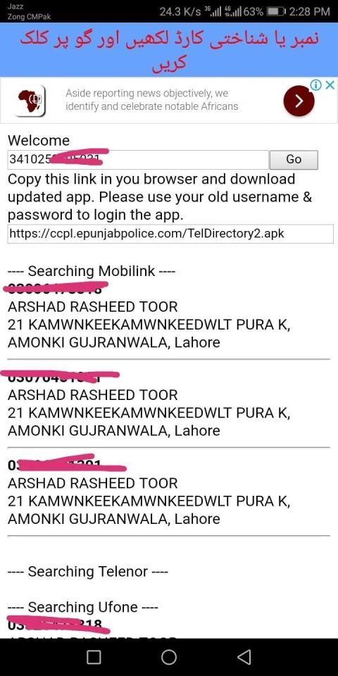 CNIC ID द्वारा पाकिस्तान सिम चेक जोड़ें