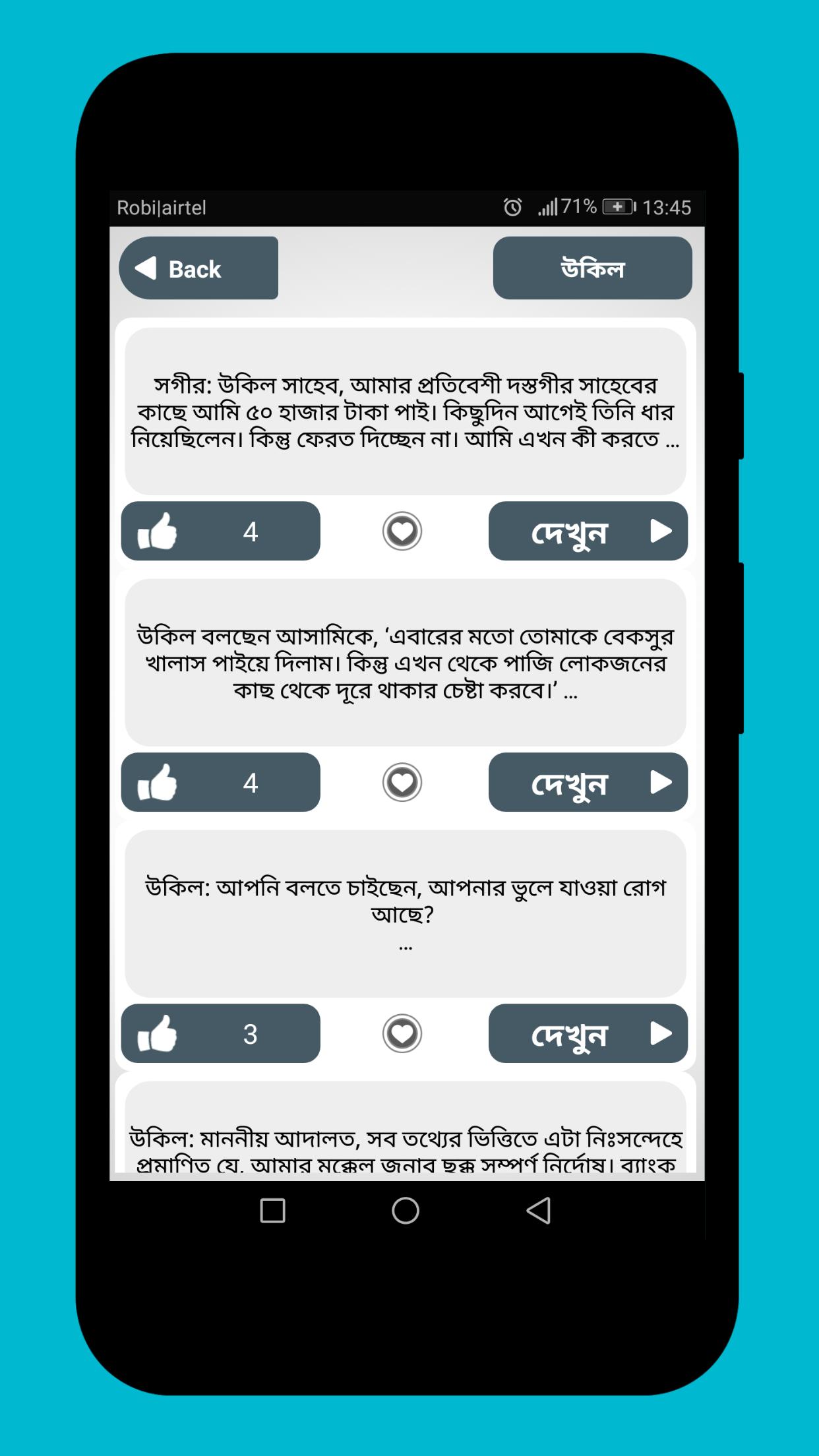 মোট ১৫টি পর্ব রয়েছে এই অ্যাপটিতে। তাছাড়া ফেইসবুক এ শেয়ার করতে পারবেন মনের মত করে।
