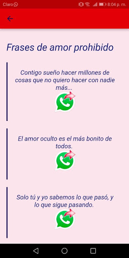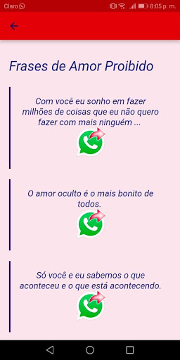 our app is very easy and intuitive to use just select the phrase you want to see and share among all we have in our categories such as phrases for a forbidden love and many others and share them by the social network of your choice.