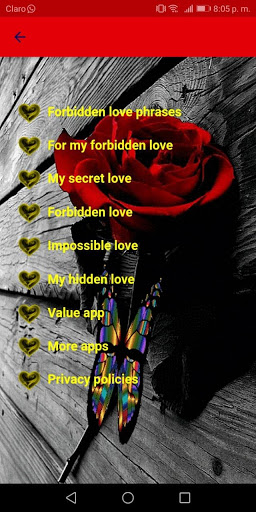For this application Phrases for a Forbidden Love is the tool that will help us to dedicate an image of love and thus be able to express our most hidden feelings, with phrases of forbidden love.
