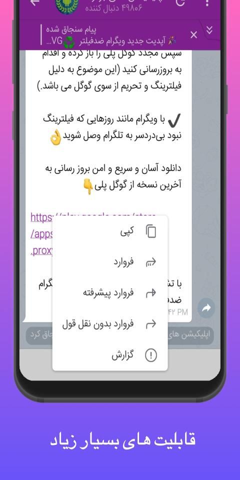 ✔️ این برنامه کاملا بدون فیلتر و یک تلگرام بدون فیلتر میباشد✔️