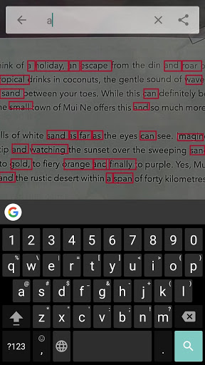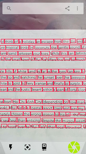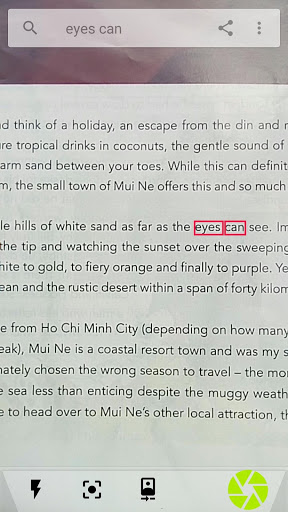 search for text in books and documents by placing the camera above the page. It shows a box over the item if the search item is found.