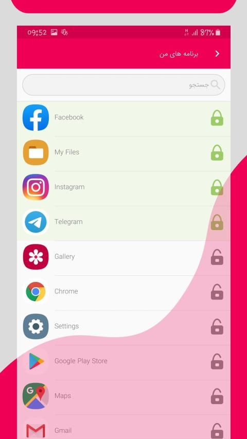 با این برنامه می تونید خیلی راحت و سریع روی پیامک ها، گالری، شبکه های اجتماعی،تمامی فایل هاتون و برنامه های دیگه ای که روی گوشیتون نصب هست رمز بگذارید تا از شر مزاحما خلاص بشید.