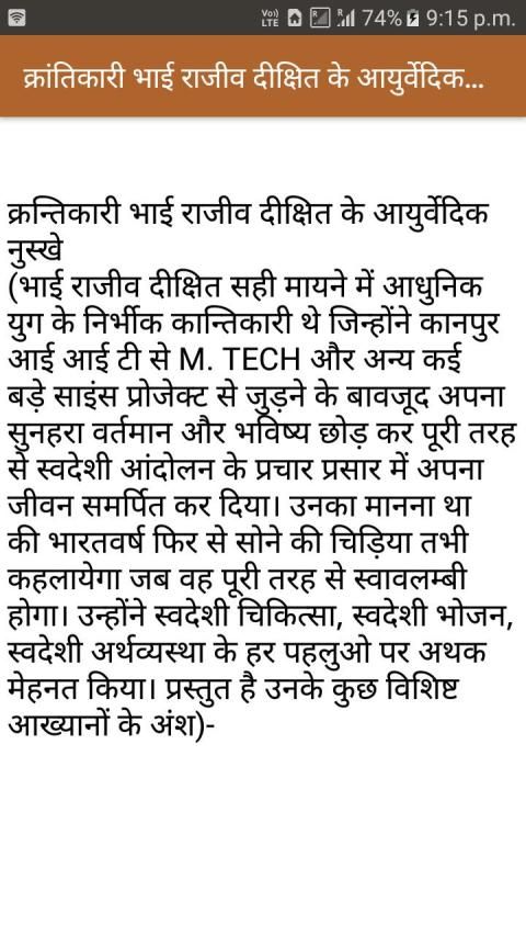 This app has the collection of home remedies collected by Shri Rajiv Dixit.