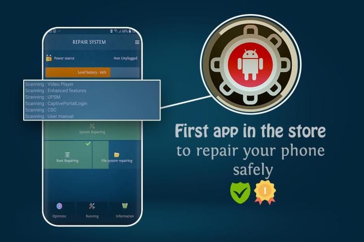मरम्मत प्रणाली - गति बूस्टर (समस्याओं को ठीक करें एंड्रॉइड) एकमात्र ऑल-इन-वन स्पीड बूस्टर और ट्रैश क्लीनर है और आपके एंड्रॉइड फोन का अनुकूलन करता है, मेमोरी स्पेस और जंक (कैश) फाइलें प्राप्त करता है।