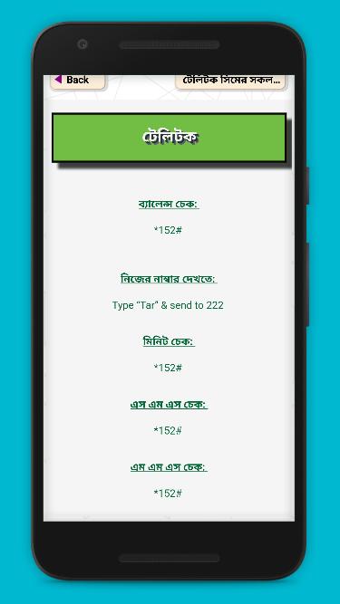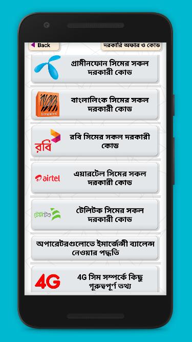 This Application for Bangladesh all types of sim card users. From this App, you will get all types of sim card base information like mobile data, package, Upcoming offer, important used, etc and for this application you don,t need an internet connection. This is the bangladeshi Apps on USSD codes of different sim operator as Robi, Grameenphone GP, Airtel, Banglalink, Teletalk. This is the most easier to the Bangladeshi users to manage Internet package, see own sim number, checking of internet balance or own account balance. This app may use as sim code manager. All Basic USSD codes of bangladeshi sim companies are available here, we do not add specific internet package but main ussd code of purchasing internet from a operator.