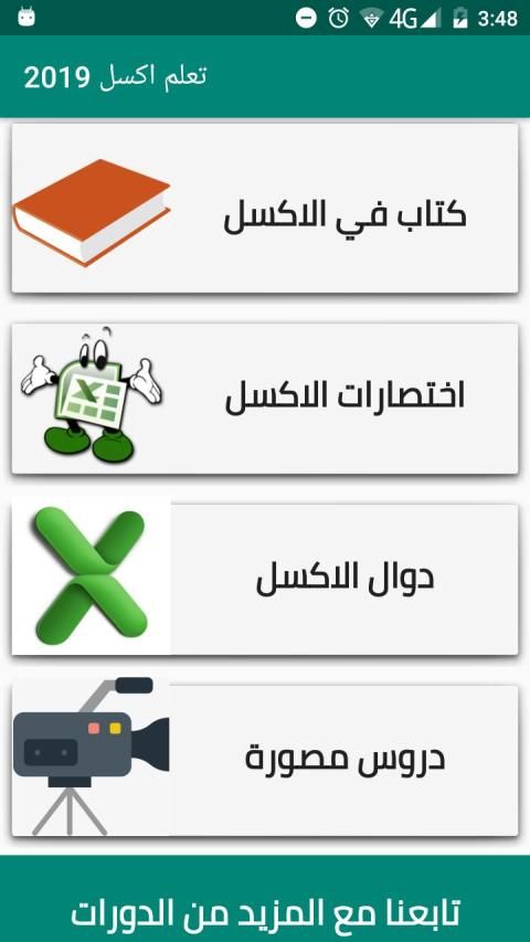 تبيق يساعدك في تعلم برنامج الاكسل ويحتوي التطبيق سلسلة تعليمية مصوري متكاملة اضافة الى كتب تعليمية