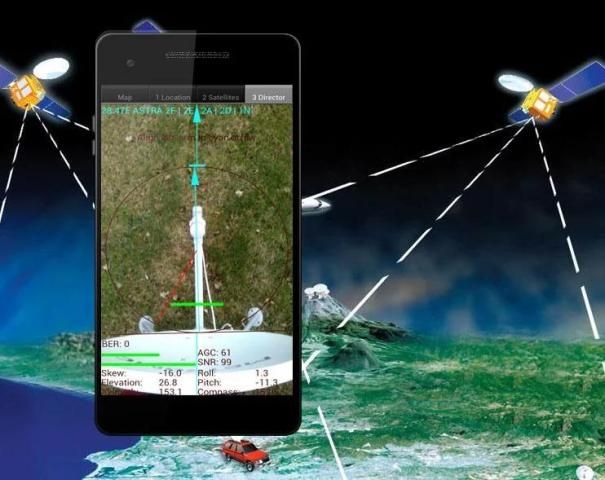 (3)। दिगंश, ऊंचाई और तिरछा कोण अपने स्थान को और चुने उपग्रह के लिए गणना की है। मूल्यों की गणना के तहत दिगंश कोण की चित्रमय प्रतिनिधित्व के साथ एक कम्पास है। दिगंश कोण चुंबकीय झुकाव उपग्रह निदेशक पेशेवर के साथ गणना की है। याद रखें - हर बार जब आप कम्पास का उपयोग करें - आप इसे ठीक करना चाहिए। ग्रीन लाइन उपग्रह निदेशक पेशेवर दिगंश अपने फोन दिगंश। तो अगर कम्पास पर हरे और लाल संकेतक एक-दूसरे उपग्रह निर्देशक पर कर रहे हैं फोन के पेशेवर सामने तुम उपग्रह को दिशा दिखाना चाहिए। अगर कम्पास मूल्य सही है - फोन दिगंश मूल्य हरी satfinder उपकरण जाना होगा।