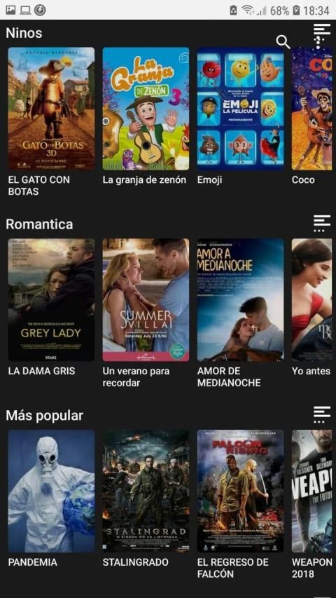 MoviesLas películas populares y de tendencia se muestran en categorías separadas.