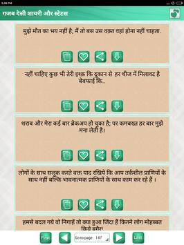 हमनें इस एप्प में गज़ब हिन्दी शायरी और status messages को शामिल किया है जिन्हें आप अपने social sites पर इस्तेमाल कर सकते हैं. social नेटवर्क पर अपनी दिल से जुडी बातों को स्टेटस बनाकर दूसरों से शेयर करना आजकल एक प्रथा सी बन गया है.