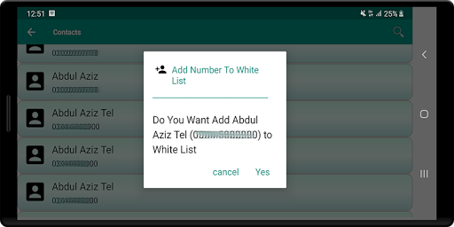 --- इन विकल्प का चयन करने के लिए, आपको केवल संख्या से कॉल प्राप्त होगा whcih होगा श्वेतसूची में उपलब्ध, अन्य सभी कॉल स्वचालित रूप से अवरुद्ध हो जाएंगे।