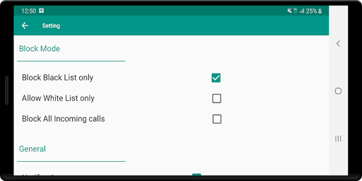 --- इस विकल्प को चुनने के लिए स्वचालित रूप से ब्लैक लिस्ट नंबरों को अवरुद्ध कर देगा, अन्य कॉल जो ब्लैक लिस्ट में उपलब्ध नहीं है, प्राप्त नहीं की जाएगी।