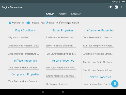 It also features options to use an Afterburner and Convergent or Convergent-Divergent Nozzle in the Gas Turbine Engines.