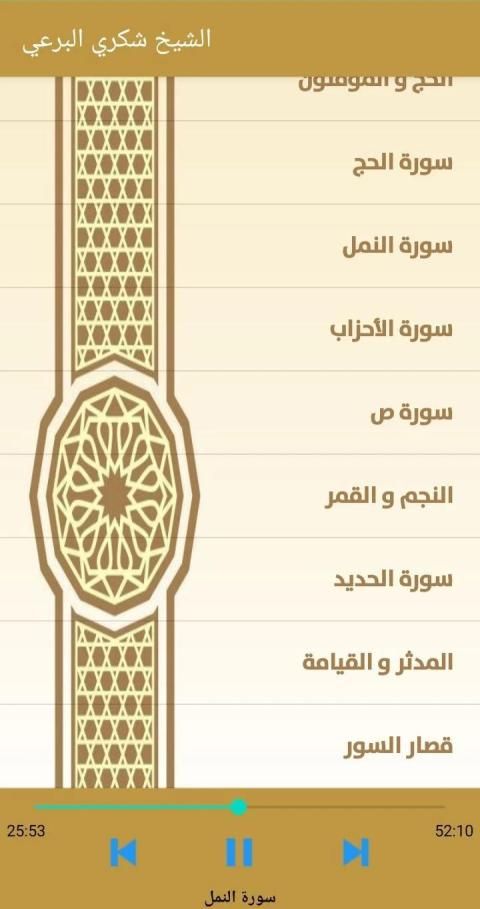الاستماع إلي تلاوات من القرآن الكريم مجود بصوت القارئ الشيخ شكري البرعي بدون إنترنت