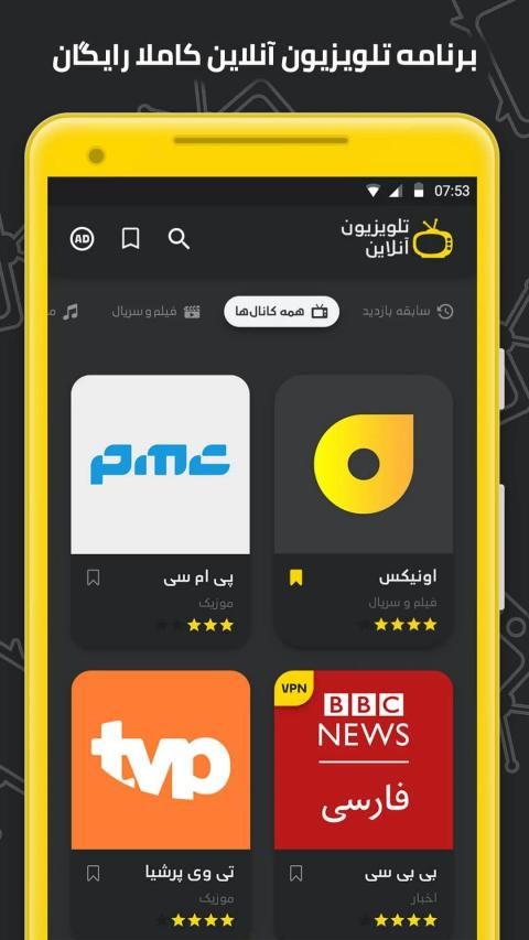 تلویزیون آنلاین با امکان پخش مستقیم شبکه های تلویزیون ایران و شبکه های تلویزیون خارجی و ماهواره برای اندروید در دسترس است