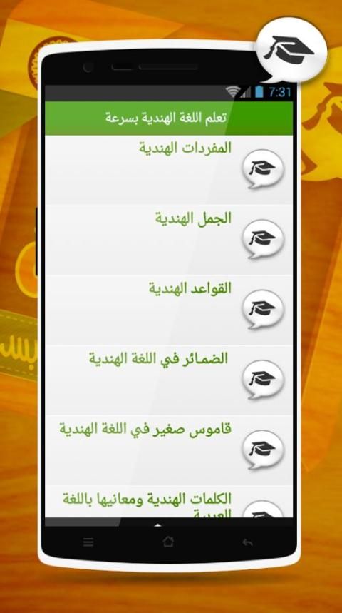 प्रेमियों और भारतीय धारावाहिकों के प्रेमियों और फिल्में और गाने या भारतीय नृत्य के लिए दुकान .. उपयोगी कार्यक्रम में आप एक नया आवेदन की पेशकश करते हैं और शैक्षिक मुख्य रूप से आप कैसे बस कुछ ही दिनों में भारतीय भाषा में महारत हासिल करने के लिए .. जानने के हिंदी जल्दी से एक मुफ्त कार्यक्रम है और कई उपयोगी सबक है सिखाने लक्षण आप इंटरनेट का उपयोग करने की आवश्यकता के बिना काफी आसानी से और हिन्दी अरबी भाषा सीखने के लिए सक्षम हो जाएगा कि। .. और भी बहुत कुछ .. और सभी आयु वर्ग के शीघ्र कार्यान्वयन, बच्चों और बुजुर्गों, महिलाओं, पुरुषों के लिए और शुरुआती और अरब समुदाय के लिए किए गए भारत में रहने वाले वाक्य और Mtalhat भारतीय, हिन्दी नियम, हिन्दी की मूल बातें: उपयोगी सबक पर आवेदन के रूप में होते हैं, उन के बीच में और अरब दुनिया में हर कोई काफी आसानी से हिन्दी सीखना चाहता है।