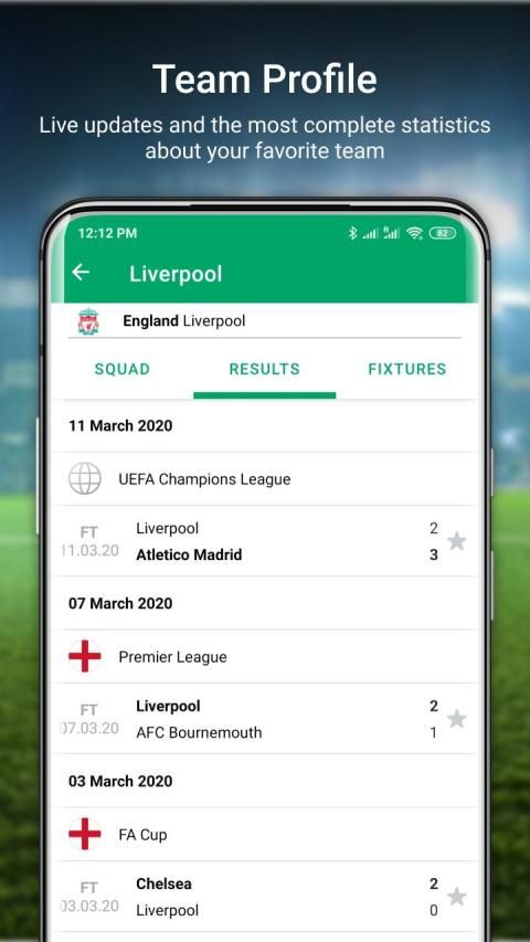 Always stay updated with livescores on game results and most important match events, like number of corners, yellow cards, players substitution, number of shots on and off target, and more.