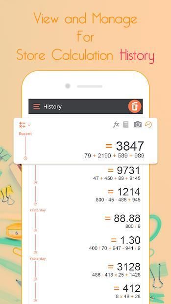 - Calculation history : Never lose your calculations, Save all of your past equations and it's answare history.