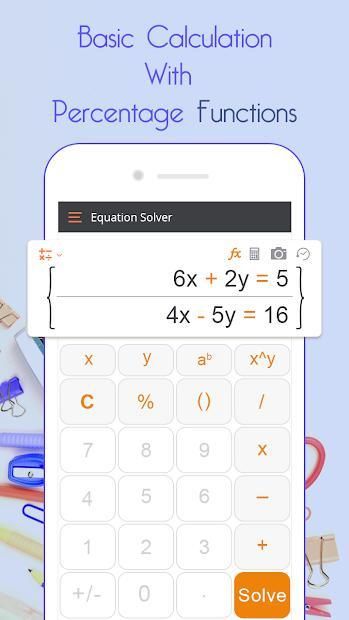 You just need to take photo your math homework with Smart Calculator – Take Photo to Solve Math and you can get a solution instantly. Smart Calculator – Take Photo to Solve Math is a multifunctional calculator which contains Basic Calculator, Scientific Calculator, Equations Calculator and BMI. With this all-in-one calculator, you can solve all the complex math problems in an easy way.