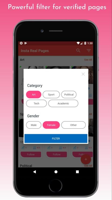 - You can filter these verfied pages of atheletes, actors and actresses, singers, artists and politions based on their countries, gender, age, number of followers and etc.